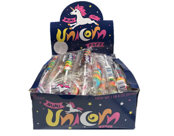 Add color, charm, and sweet magic to your candy lineup with Adams & Brooks Mini Unicorn Pops, the iconic twisted lollipops known for their vibrant swirls and delicious fruity flavor. These mini pops are individually wrapped, perfectly sized at .42 ounces each, and ideal for parties, gifting, candy buffets, or resale.