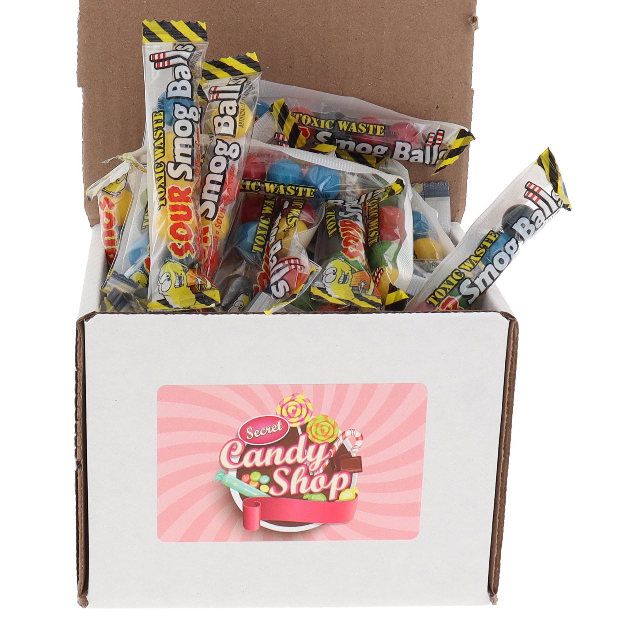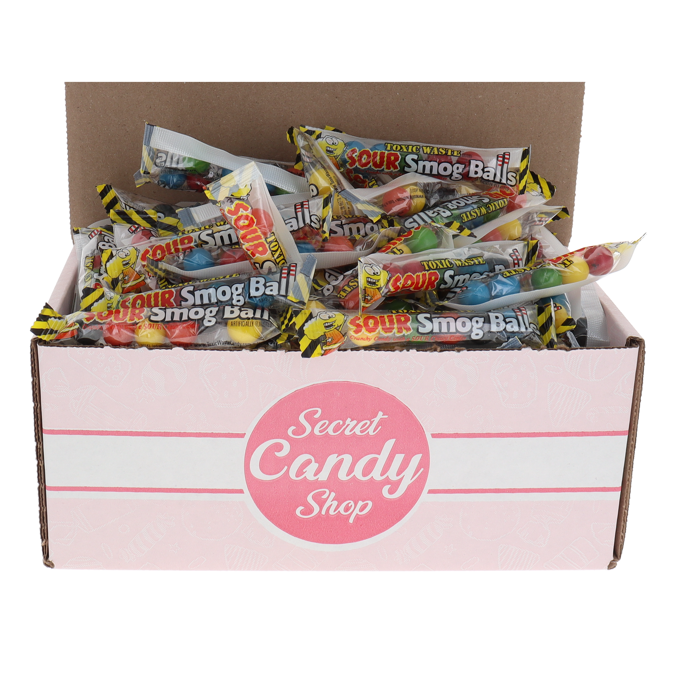 Brace yourself for a blast of sour with Toxic Waste Sour Smog Ball Shooters-crunchy candy shells with chewy, ultra-sour centers. Packed by weight and shipped in a custom Secret Candy Shop box, these bold little candies deliver a punch of tangy intensity in every bite.