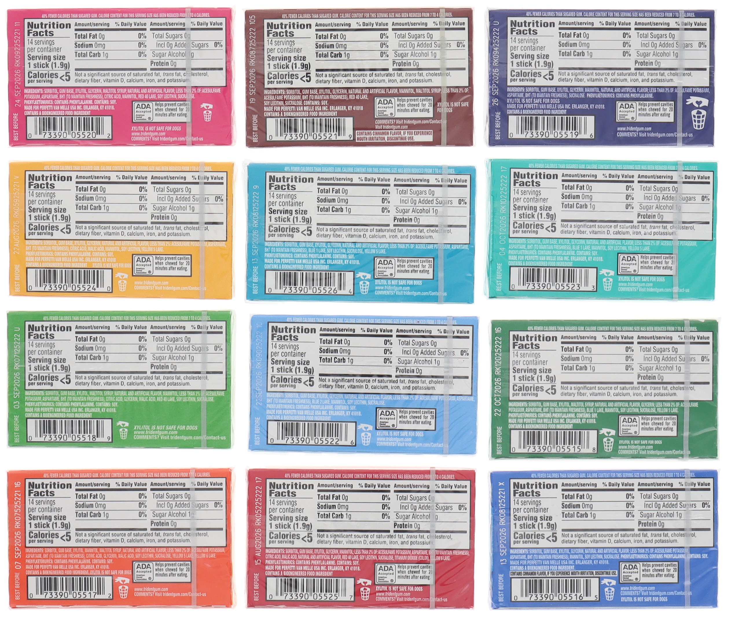 - 12 Flavors: Spearmint, Original, Bubble Gum, Tropical Twist, Cinnamon, Watermelon Twist, Perfect Peppermint, Wintergreen, Mint Bliss, Pineapple Twist, Minty Sweet Twist, Island Berry Lime.